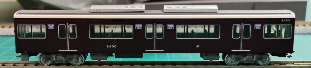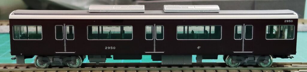 最後に参考にジャーマングレー塗装の有無の写真を載せておきます。ここは簡単ですのでカッコいい阪急を目指すなら是非。
