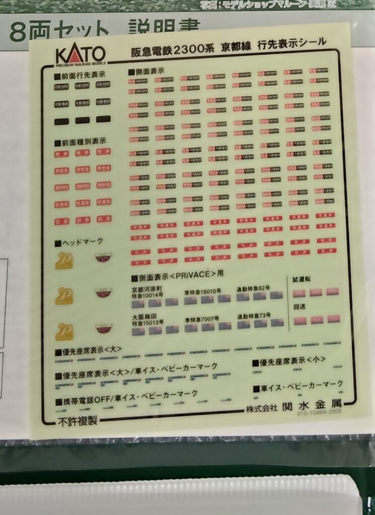 また、前面表示交換用として「準特急 大阪梅田」、「準特急 京都河原町」、フリーのパーツが付属されています。